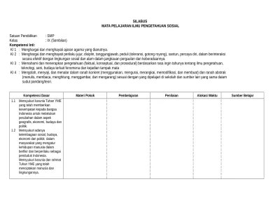 silabus merupakan dokumen yang tidak dapat dipisahkan dengan rpp prota promes kkm rancangan penilaian pemetaan sk kd dan kalender pendidikan. Pada kesempatan kali ini gudang kurikulum 2013 akan. File atau dokumen pada silabus kelas 7 mapel ilmu pengetahuan sosial kurikulum 2013 revisi tahun 2019 2020 ini kami bagikan 3 file yakni 1 model 6 kolom dan 2 model dengan 3 kolom. Prota, promes, silabus, rpp ips smp kelas 7 kurikulum 2013 terbaru 2018. silabus dan rpp smp kurikulum 2013 kelas vii viii dan ix rpp dan silabus merupakan perangkat pembelajaran yang harus dimiliki oleh setiap guru.